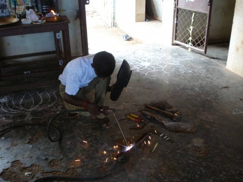 B. Vinoth’s three older brothers have set a great example for him. One is a mason, one is a mechanic and one is an electrician. B. Vinoth wanted to pursue a trade just like his brothers, but could not afford the welding kit required for his training at the Padma Industrial School. Robert, thank you for your gift of a welding kit. Now B. Vinoth will have a trade too!